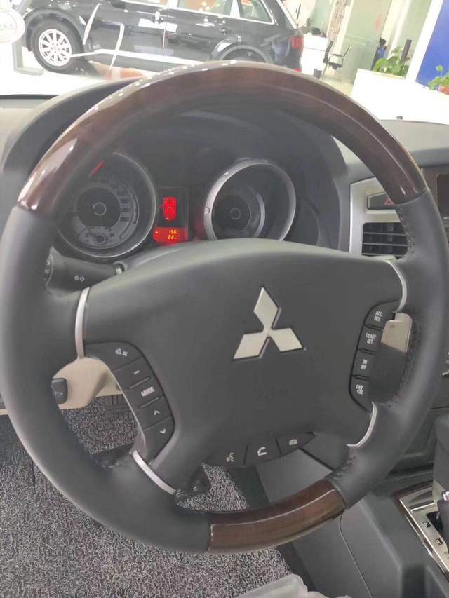 19款三菱帕杰罗V97内饰方面:进口三菱帕杰罗内饰设计简约平实,大面积银色的装饰面板、高亮度银色外环仪表盘、上深下浅双色调处理的中控,局部使用的深色桃木材质。进口三菱帕杰罗方向盘采用三幅真皮多功能方向盘,并集成了具有定速巡航控制键,配合运动轻便感十足的拨片换挡杆,在操控便捷的同时极大地提升了驾驶乐趣。