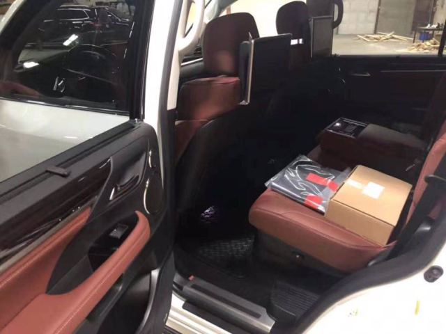 雷克萨斯LX570在方向盘、做工十分精细,而出风口外包围面板、杯座盖、USB盒盖、后座加热控制面板及中控面板上部也均改为高亮度银材质,金属饰板 与桃木装饰的搭配很自然。中控显示屏幕很大,具备GPS导航功能。该车还配备了与世界音响知名品Mark Levinson联袂打造的顶级高端音响系统,给人以绝美的听觉感受。全景影像系统的配备,也进一步增强了这款全尺寸SUV的易驾程度。此外,新款雷克萨 斯LX570装配了Remote Touch控制机构、智能安全系统LSS+(包含自适应巡航、预碰撞安全、车道偏离预警等)、后排双液晶显示屏、后排多媒体控制、车内氛围灯、多种驾驶模 式选择、HUD平视显示系统等。