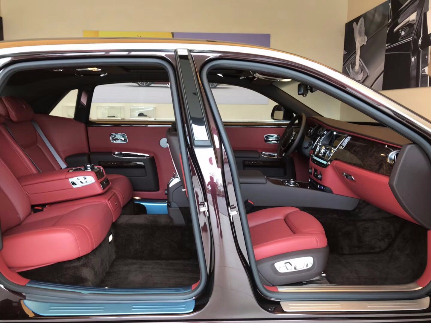 配置:钻石黑/热情红-现车定制包:核桃木装饰,航空座椅,顶级定制地毯,定制雨伞,22吋锻造抛光轮,24K纯金“欢庆女神”立标,前座椅通风按摩,星光顶,二排遮阳帘,二排腿部支撑,双腰线,后座椅通风按摩,主动巡航(ACC雷测),全红内饰座椅,夜视行人识别系统,无钥匙进入,二排遮阳帘,后排冰箱,二排脚蹬,劳斯莱斯定制音响,远光辅助,所有门边logo压花,所有头枕logo刺绣,个性VIN版,双镀铬排气。标准配置:胎压监测,车库互联 ,舒适进入 ,吸烟套,前座椅通风/加热/按摩 ,后排座椅加热/按摩 ,负氧离子空气净化 ,停车辅助 远光辅助 ,驾驶辅助 ,雷达测距,自动启停,360度环影 ,抬头显示,导航,CD/卫星电话/电话/智能驾驶互联,后排影音系统,手机无线充电,夜视系统,WIFI热点。