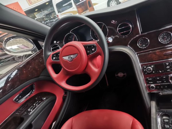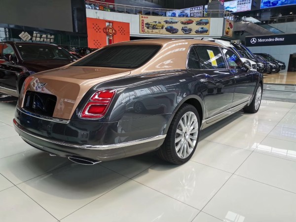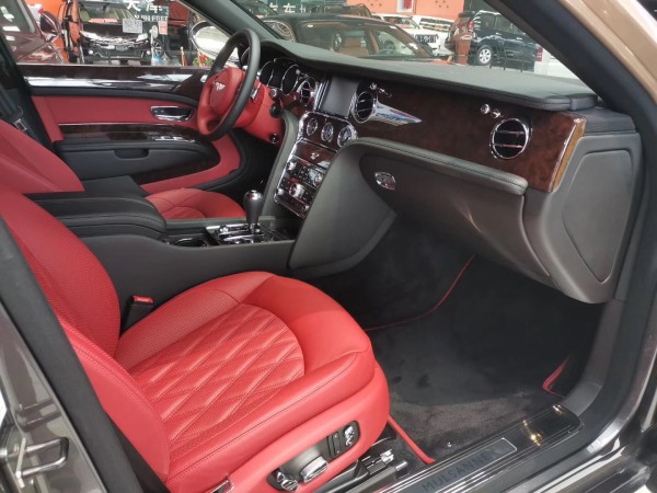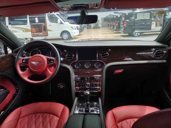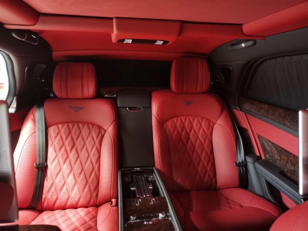 内部充分利用额外的后排空间,宾利研发了航空式电子腿托,组装在两个后排座椅的基座上。腿托可以向外延伸和旋转,为后排乘客提供直立、放松、倾斜等不同座椅位置的乘坐体验。在慕尚长轴距版的两个后排座椅之间,有一个控制台,还提供各种实用功能,例如USB接口、笔架、杯托和玻璃盖储存区。