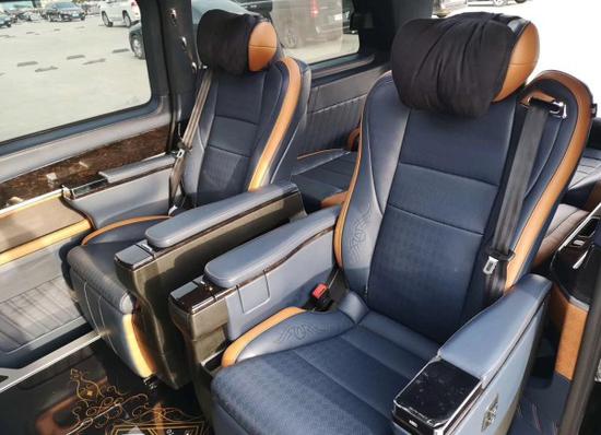18款奔驰V250非凡的内饰展现在每一个细节,无隔断式设计让内部空间感更加宽阔。中央的首长席座椅多功多样,包括有多向电动调节、腿托、前后旋转等。车顶采用简洁化的设计,采用Alcantara包裹高档感十足。两张座椅皮质与填充物方面都以舒适为主。上面的缝线也相当细腻,首长席折叠电脑桌闪耀。