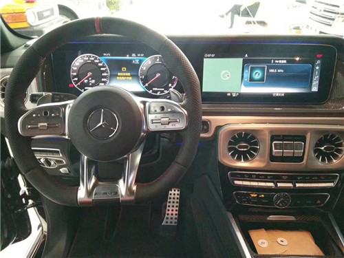 奔驰G63经过全新改款内饰豪华气派,卓越的品质和精致的工艺在车内体现得淋漓尽致,对细节的精益求精是内饰设计中的重要原则。车内采用深色调与桃木装饰,黑色真皮运动座椅非常舒适,方向盘以高档真皮包裹装饰,触感极其细腻。配有桃木装饰的操控台,稳重大气,同时提高了整体的质感。