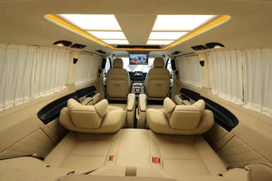奔驰V250改装放纵的自由,满足商务接待、洽谈、出游等的需求使用,改装后座三连排电动沙发座椅,向后拓展可一键平躺变身奢华大床,商务出行可作为休憩佳所,合家出游首选。
