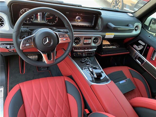19款奔驰G500内饰豪华气派,卓越的品质和精致的工艺在车内体现得淋漓尽致,对细节的精益求精是内饰设计中的重要原则。车内采用深色调与桃木装饰,黑色真皮运动座椅非常舒适,方向盘以高档真皮包裹装饰,触感极其细腻。配有桃木装饰的操控台,稳重大气,同时提高了整体的质感。各种功能按钮应有尽有,丝毫不次于豪华轿车的功能。内饰焕然一新,虽然还是以平直的线条为主,但完全没 了上一代车型那种粗糙的感觉了,用料和做工都能令人满意。跟奔驰的很多其他车型一样,它也用上了双12.3英寸屏幕,科技感很强。