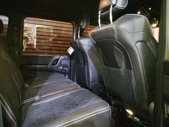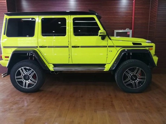 奔驰G5004×4透过巧手改造,打造出专属BRABUS的性能风味。打开车门,电动遥控踏板会自动伸出,奔驰G5004×4黑色真皮重新包覆中控台、 座椅及门板,甚且中控台及排档座皆采用了质感不凡的碳纤维材质饰板。其简洁明朗的线条勾勒出越野车应有的刚劲线条,奔驰家族特有的豪华与复古气质,强劲的越野性能造就了当下最独特的奔驰G5004×4。