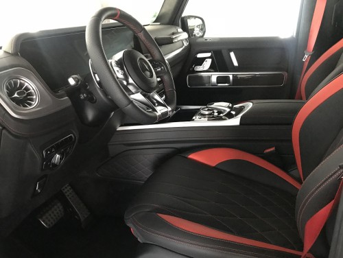 2019款全新G63内饰方面,新G63保留了新G500的整体设计,除配色差异外,新车还换装了全新造型的平底式AMG运动方向盘,其两侧配以打孔皮质包裹,下部镀铬装饰的造型也与新G 500明显不同,看上去十分战斗。此外,全液晶仪表盘+中控大屏的双12.3英寸屏幕设计在新车上也没有缺席,营造出了浓郁的科技感。新G63保留了新G500的整体设计,除配色差异外,新车还换装了全新造型的平底式AMG运动方向盘,其两侧配以打孔皮质包裹,下部镀铬装饰的造型也与新G 500明显不同,看上去十分战斗。此外,全液晶仪表盘+中控大屏的双12.3英寸屏幕设计在新车上也没有缺席,营造出了浓郁的科技感,2019款奔驰G500价格G63报价G63先型特别版多少钱。