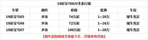 动力方面:19款宝马X7在世界各地市场提供xDrive 50i (配置|询价)、xDrive 40i、xDrive M50d、xDrive 30d共四种动力车型,分别搭载4.4升双涡轮增压V8发动机(465马力/649牛·米)、3.0升涡轮增压直列六缸发动机(340马力/447牛·米)、3.0升四涡轮增压直列六缸柴油发动机(400马力/760牛·米)和3.0升涡轮增压直列六缸柴油发动机(265马力/620牛·米)。传动方面,均匹配8速自动变速箱和四驱系统。