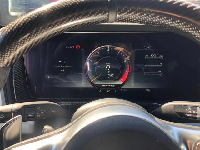 全新G63内饰方面,新G63保留了新G500的整体设计,除配色差异外,新车还换装了全新造型的平底式AMG运动方向盘,其两侧配以打孔皮质包裹,下部 镀铬装饰的造型也与新G 500明显不同,看上去十分战斗。此外,全液晶仪表盘+中控大屏的双12.3英寸屏幕设计在新车上也没有缺席,营造出了浓郁的科技感