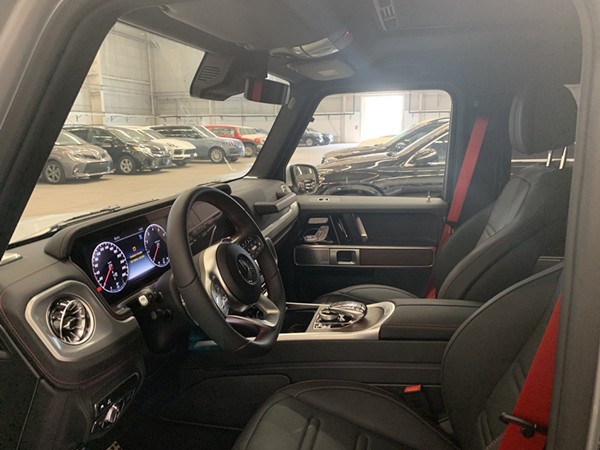 换代的最大最大亮点之一,给人耳目一新的感觉,双12.3英寸液晶通体屏幕外加与奔驰E COUPE相同的空调出风口设计,让大G的内饰更加豪华,科技感也有所增强。沿用多年的四辐式方向盘也改为三辐式设计,三点以及九点处的多功能按键也与S级 (配置|询价)车型相同,两侧黑色触控按键可以控制仪表盘信息,其中行车电脑和右侧模拟仪表都可以进行切换,可显示油耗、续航里程、车辆状态等信息。在内饰用料方面,奔驰全新G级内部均采用了真皮材质包裹,手感极佳。在副驾驶台上还增加了碳纤维扶手,保护了车内人员在行车时的安全性。