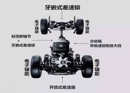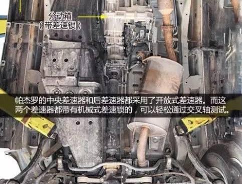 帕杰罗搭载三菱第二代超选四驱系统,这套系统最大的特点就是将分时四驱和全时四驱有效的结合在一起,分别发挥了他们各自最大的作用,当车辆在铺装路面正常行驶时采用后轮驱动,而在路面湿滑的时候可以选择4H挡位,超选四驱的4H挡同传统分时四驱的4H模式有很大不同,它并不是由分动向控制前后传动轴刚性连接,而是由一套专属的多片离合器式的中央差速器负责调控这个档位下的前后轴扭矩分配,相当于我们传统意义上的全时四驱。
