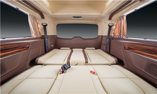 1,奔驰V级只有一个排量型号V260(2.0T),四款配置车型,一个L加长版,一个AMG运动套件版,加长版车身长度达到了5370mm,普通版为5140mm,相当于多了20多厘米的长度,车内空间上表现就是三排座椅舒服乘坐后,后备箱仍有不小的可观的空间。