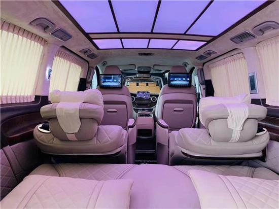 2020新款奔驰迈巴赫VS680独一无二稀有双色车身,迈巴赫商务7座商务,进口奔驰V (配置|询价)250改装迈巴赫VS680,进口奔驰V250迈巴赫版VS680整车采用2+2+3正七座格局,全车尺寸:5370.1928.1920mm,搭载 2.0T涡轮增压发动机,最大功率可达155KW(211ps),峰值扭矩为350Nm,全系匹配7速自动变速器,底盘采用了AGILITY CONTROL敏捷操控技术的悬挂系统,可配合路况和行驶情况而调整阻尼特性,在提高乘坐舒适性的同时,也让驾驶过程乐趣十足。