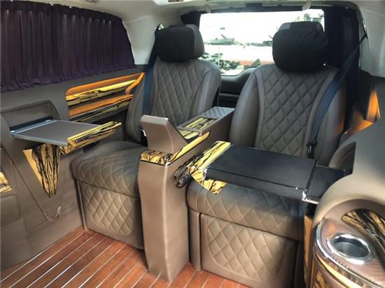 奔驰v260房车贵宾舱搭载2张人体工程学设计、带有一键式展开及记忆功能。并配备加热、通风、气动按摩、一键式伸缩腿托功能的迈巴赫S级 (配置|询价)豪华座椅,带来头等舱级舒适体验!