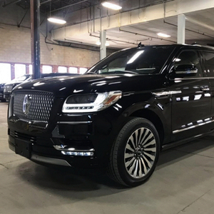 全新领航员的前脸首次采用了林肯家族全新的设计语言,星辉式前格栅搭配王冠式LED自适应前大灯,大气稳重。大灯的造型、车窗的轮廓、车顶的线条、车侧的腰线、甚至车身上的镀铬饰条,都是以“平直”为基准,方正间更显霸气。车窗与车身的比例呈现最佳的视觉效果,配合22英寸的大尺寸车轮,身材的“庞大”不会给人笨重的感觉。我们这次体验的是总统系列的全新领航员,风火轮造型的轮圈与Navigator概念车保持了同款。
