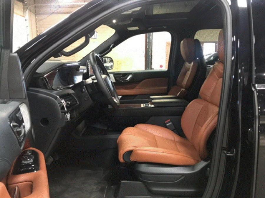19款林肯领航员3.5TT 7座精雕细琢的内饰, 结合了美国胡桃木和高级真皮材料、丝光镍饰件与白色发光二极管等组合一起,营造出一个豪华、浪漫而又极具现代感的车内环境。方向盘和轿车一样的轻盈,周身散发出来的尊贵气息,让人肃然起敬。