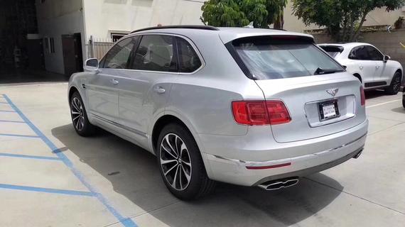 2019款宾利添越的两侧尾灯在后背门处一分为二,融入了B型光源造型,被尾门分为两段式,不论白天还是夜晚,都可以营造出独特的视觉效果,车尾部和后腰线完美结合,打造实用并且动感的车尾。浮雕般的后轮拱复刻了经典的宾利造型元素,并展现出添越自内而外散发出的自信。430升的备箱十分平整,拉运大件行李不成问题。