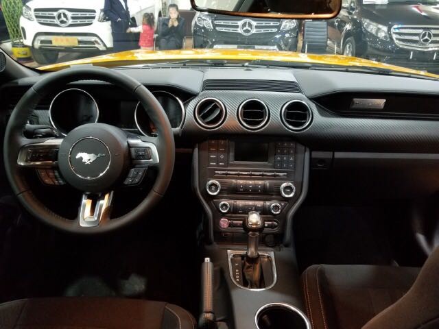 19款福特野马这次全部改为真正的铝合金面板,甚至连方向盘上的银色部分。也是金属材料,用强烈的金属感来衬托外形的肌肉感,同时能够满足现代时尚的审美观。新车中控台中央增加了一个大尺寸的屏幕,下方按键的排列也有所调整,车内散发的那种稳重硬朗的气质,让人很容易感受得到。圆形的空调出风口可以向任意角度送风,时尚又实用,此外,新车还将搭载福特与微软共同开发的SYNC系统。