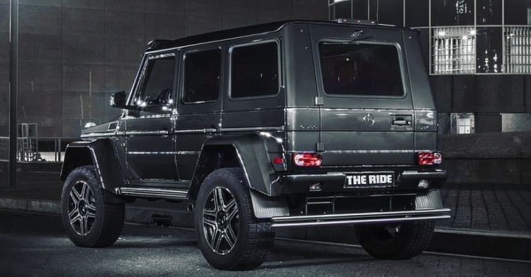 侧面能很清楚的看到这个车的离地间隙有多高,450mm的离地间隙配合着325/55R22的轮胎是有多霸气一目了然,涉水深度为1000mm,比普通版G500多了400mm,接角和离去角分别是52°和54°,也远远超过了普通G500的36°和27°。在越野方面普通G500和奔驰G 500 4×42是不可言语的。