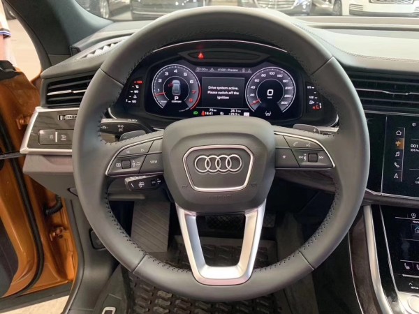 19款奥迪Q8全车身尺寸4986*2190*1705mm,轴距为2995mm,全轮驱动,8速自动变速箱,3.0L V6双涡轮增压汽油发动机。19款奥迪Q8由7种不同驾驶模式,包括越野模式。在越野状态下,如果是自适应空气悬挂版本将底MI显示器上,供驾驶员参考。在6%以上的陡坡道上,陡坡缓降控制以自动制动输入提供支持,最高速度30公里/小时盘抬至最高,离地间隙可达254毫米、标准悬挂版离地间隙为220毫米。