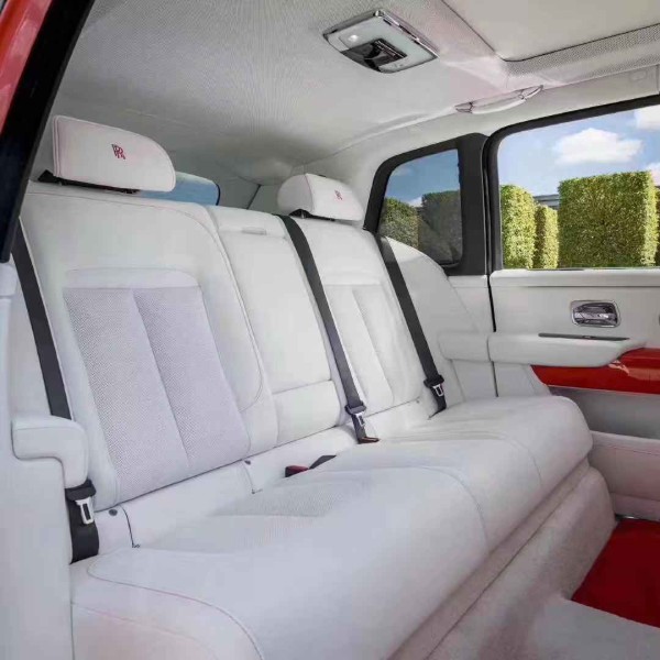 劳斯莱斯标志性马车式的对开门设计自然不会缺席,车门巨大的开启角度最大程度保证了上下车的便利性。顶部全景天窗的面积覆盖了一多半的车顶区域。车尾造型同样延续了劳斯莱斯方正的家族式特征,粗壮的D柱在车尾形成了陡峭的倾斜。平直的后风挡自车顶的扰流板向下延伸,在尾部形成了一个平台。整体造型依旧充满力量感。尾灯造型相比全新幻影更加方正,环状的LED灯带内部镶嵌着带有双R标志的装饰,更显精致。