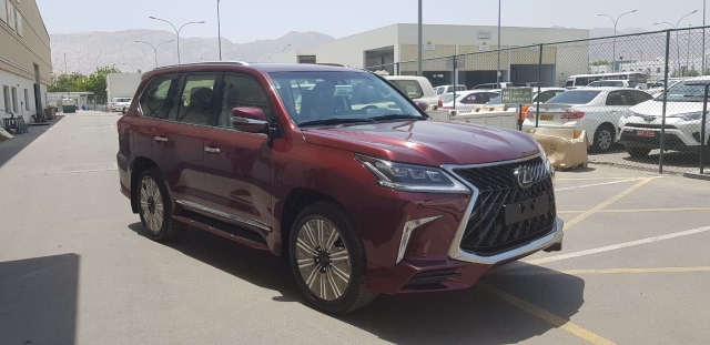 19款中东版雷克萨斯570 配置: 后盖带LED灯,雷克萨斯标的地射灯,抬头显示,21轮,遥控启动,外置脱钩,车身防擦条, 流水式转向灯, 138升双油箱,换挡拨片、冰箱、天窗、智能卡、电眼、环影、后娱、底盘升降、前座椅通风加热(真皮)、后座椅通风,导航、倒影、桃木多功能方向盘、桃木内饰、铝制行李架、航空照明脚踏、LED 氙灯 大灯清洗、迎宾灯、四区空调、三排电动、电尾门、拖车钩,风挡玻璃除冰功能,雷达测距。