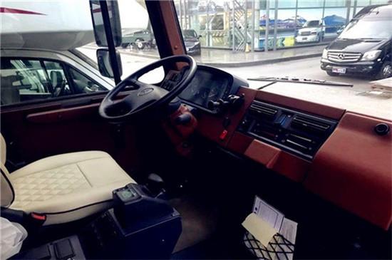 在动力方面,欧Ⅴ的乌尼莫克车型搭载的是一台代号为OM924LA.V/2四缸电喷增压发动机,最大输出218马力,然而最大扭矩却达到了810N.m,说是大马拉小车丝毫不过分,强劲的发动机为整车越障和攀爬提供了源源不断的动力支持。与发动机相匹配的是一台奔驰专门为乌尼莫克设计的UG100-8的AMT变速箱并带一体式分动箱,拥有8个前进挡,而倒挡多达6个,Telligent智能换挡系统可以在自动和手动换挡之间切换,适用于各种复杂越野路况,增加了驾驶的操控性和机动性。
