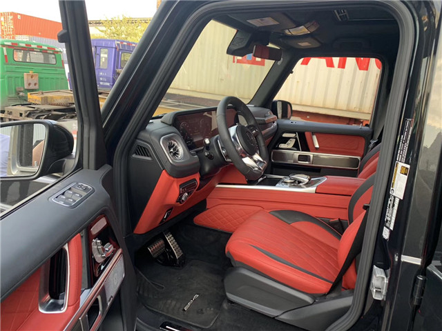19款美规奔驰G63-黑红,选配:增强尊享内饰包(designo红色菱形座椅,nappa真皮仪表台,designo DINAMICA顶棚,前排多轮廓座椅,前排按摩座椅,前排通风座椅,前排快速座椅加热),AMG高性能运动方向盘,方向盘加热、四季脚垫、解除240公里限速、22寸锻造AMG十幅轮毂,AMG红色制动卡钳,12.3寸宽屏,360环影。标配:天窗,柏林之声,三区空调,前后加热,智能卡,carPlay,雷达测距,变线辅助,前后电眼自动泊车,多光束LED大灯,倒影。