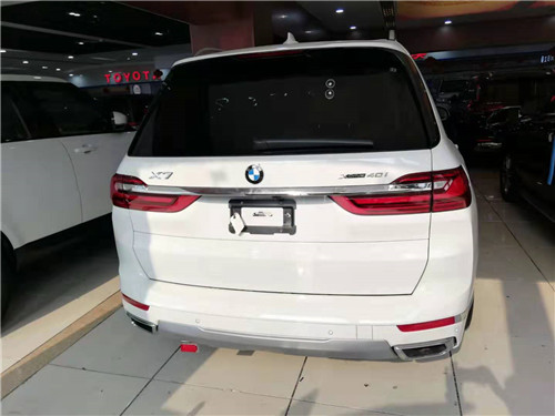 19款宝马X7 (配置|询价)的旗舰级产品,它自然要配备宝马最大的双肾进气格栅,这个宝马标志性的产品再次绽放出它的光芒。新车巨大的双肾格栅带有主动式进气格栅,可以缩短发动机的暖机时间与降低风阻,尽可能提升效率。而两侧大灯组尺寸与样式也非常帅气,标配LED光源可选装激光大灯,据悉最远照射距离可达600米,整体来看科技感与时尚感都非常出色,比起奔驰。