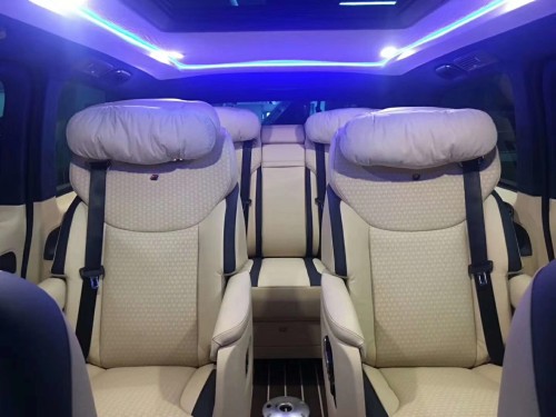 2019款进口奔驰维特斯豪华商务车为您度身定制VIP专属步入感,乘客舱前排首长级多功能按摩座椅带脚托,设计了滑轨,可自由电动移动和收缩,适应多种身高、体型的乘客,多种坐姿任君挑选,将舒适惬意延伸到车内每个角落,娱乐影音配备齐全,吸顶高清液晶电视,需要时可以往下翻,按钮一按,最新热点、时尚资讯随时掌握。
