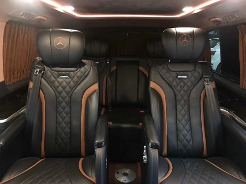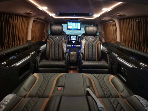 19款奔驰威霆 (配置|询价)改装商务车配置:双侧电动门,全车大包围,铝合金行李架,LED 流水尾灯,倒影,多功能方向盘,冰箱及原厂中排后座小桌板,前排电动座椅,12.1寸超大屏手机互联智能音响导航系统,全车高级桃木内饰,后座11.6寸1080P高清智能娱乐系统,支持各种格式无损音乐播放,二排多项商务座椅,带加热、通风、按摩,可360度旋转,三排电动调节触摸屏控制后排3人座,可放平180度做为家庭出行商旅舒适休息床铺,带加热、通风,4人折叠收放商务小桌。