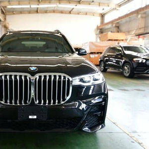 19款宝马X7外观方面,全新宝马X7不仅延续了宝马家族式的设计,两侧连接大灯组,外观做了开眼角处理,上下两条LED日间行驶灯做了上下眼眉,两组大型的远近光灯被箭头式造型勾勒,下面的进气口采用大嘴式设计嘴角连接L型雾灯区,有种嘴角上翘的而感觉,远远望去非常有威严。