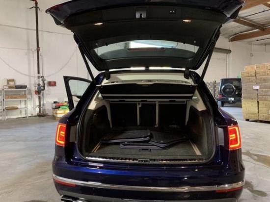 宾利添越的两侧尾灯在后背门处一分为二,融入了B型光源造型,被尾门分为两段式,不论白天还是夜晚,都可以营造出独特的视觉效果,车尾部和后腰线完美结合,打造实用并且动感的车尾。浮雕般的后轮拱复刻了经典的宾利造型元素,并展现出添越自内而外散发出的自信。是一部真正意义上可征服任何地形的宾利车型。