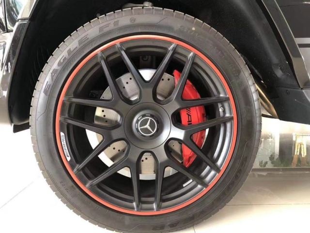 19款奔驰G63 (配置|询价)全新的直瀑式进气格栅可以说是家族最新的设计风格,也是在新车外观造型上与奔驰系列产品差异化最明显的地方。此外,G63最大的轮圈尺寸,进一步提升了它外观造型的彪悍程度。展车不仅采用了全新的车身涂装,还搭配了红色的轮圈装饰,更加个性。