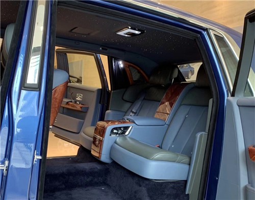 2019款劳斯莱斯幻影加长版电动折叠板和后排影院系统被巧妙的隐藏在前排座椅的椅背后,只需轻触按钮,便可以自如收放桌板和影院系统,带来完美的剧院体验。后排中央固定扶手做了重点优化,其中国可容纳带有威士忌酒具的酒柜、香槟酒具和冷藏箱,方便乘客畅快交谈,后排座椅角度可以任意调节,这一设计让客户无需转头便可视线自如交流。整个车厢内饰全部以最精美的高档材料装饰,使车内极具触感。