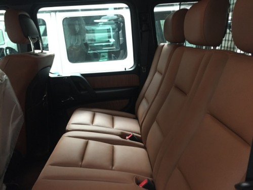 18款奔驰G500的后排空间宽大,座三个人绰绰有余,而且绝对不会顶头,乘坐座椅的舒适度还是可以的,谈不上特别舒适,但肯定比一般车要好。棕色真皮运动座椅,后排座椅可以任意折叠,折叠后,可得到更宽敞的储物空间。另外G500车的车外后视镜上也嵌入了转向灯。新车经典的造型并使其成为越野界王者,万水千山的征途,靠的还是坚实的步伐和一身钢筋铁骨。