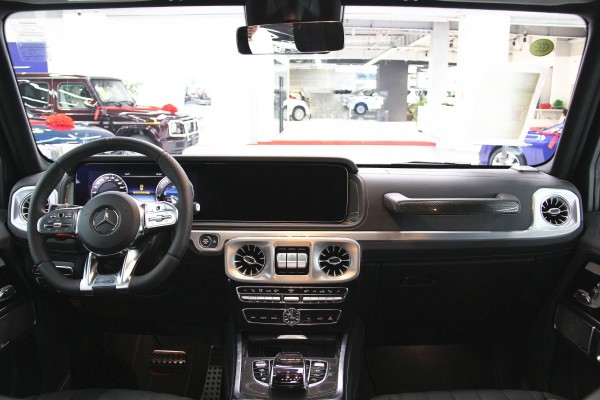 奔驰G63经过全新改款内饰豪华气派,卓越的品质和精致的工艺在车内体现得淋漓尽致,对细节的精益求精是内饰设计中的重要原则。车内采用深色调与桃木装饰,黑色真皮动座椅非常舒适,方向盘以高档真皮包裹装饰,触感极其细腻。配有桃木装饰的操控台,稳重大气,同时提高了整体的质感。