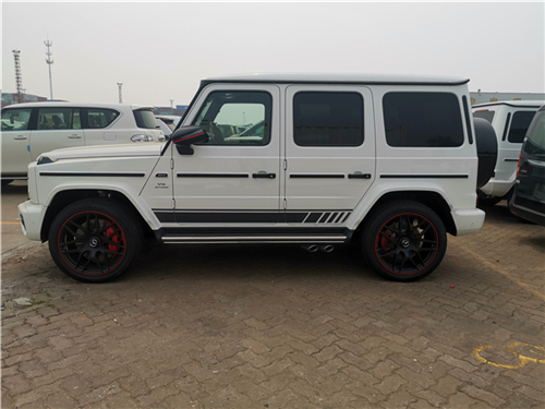 新车的侧面四四方方的,非常帅气,全新一代奔驰G63 (配置|询价)亮点:1。尺寸相比老款有了明显提升,轴距增加40mm;2。内饰全面升级,既有越野车的粗犷,又充满了科技感;3。越野能力相比老款有了明显的提升,变得更加强大;4。公路表现值得称赞,日常使用也足够舒适豪华。外观设计:粗犷中增添了几分精致全新奔驰G级 (配置|询价)仍然保持专业越野车的定位,同时采用了4864*1984*1974mm,轴距为2890mm。靠后的两扇车窗都采用了隐私玻璃,后排乘客的后备箱内的私密性都照顾到了。新车的轮毂造型更具运动风格,22寸的超大号双六辐式轮毂相当霸气,轮胎尺寸为295/40 R