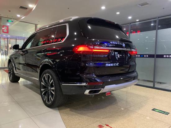 19款宝马X7尾灯是尾部设计的一大亮点,但并没有采用目前汽车行业流行的贯穿式尾灯,只用贯穿的镀铬装饰让尾部更显一体化,下方是不规则的四边形排气口。新车采用了双边共两出式排气布局,配合上方后备厢出多条隆起的筋线,让该车倍显力量。