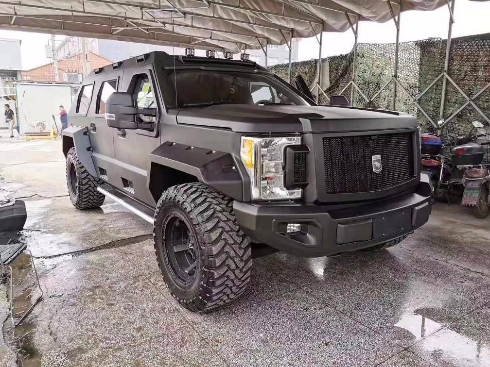 新款乔治·巴顿越野车是一款美国产超级越野车,在国内只有很少的数量。此车以二战时期美国将领乔治巴顿起名,因为这两款车都有较好的续航能力和越野能力。老款乔治·巴顿 搭载的是V10发动机,排量为6.8L,乔治巴顿内饰搭配6挡自动变速器。内饰采用了双色混搭,座椅纯手工缝制,看上去非常舒服,有着一种优雅古典的格调,特别是驾驶舱内有夜视系统、卫星导航、防生化毒气系统、供氧设备等安全设备,还有多媒体影音视讯系统、高科技卫星侦测系统。