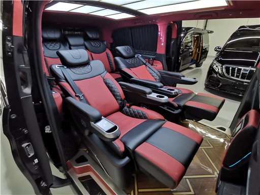 奔驰威霆改装商务车 商务接待内饰太奢华了,首先,在座椅部分,宽大厚软的真皮座椅,具备多向调节与按摩等功能更佳;毕竟MPV不是小巴士,不必追求座位数量;MPV改装应追求乘坐体验,为达到此目的,换上一套大沙发也未尝不可。得益于MPV巨大的内部空间,改装内饰时自由度更高;玩家们可以毫无压力地在MPV的车厢里打造一个豪华包厢,让乘客在行驶过程中获得豪华体验。