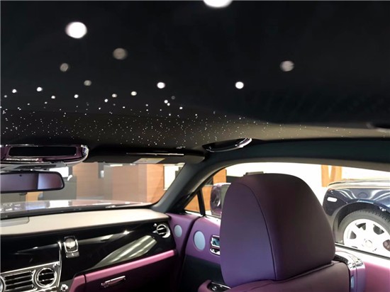 除此之外,漂亮的星空车顶会给您前所未有的观感,这繁星点点也都是纯手工制作而成。通过1340根导光纤维手工制作的星空车顶,可以说是劳斯莱斯最有吸引力的配置之一。