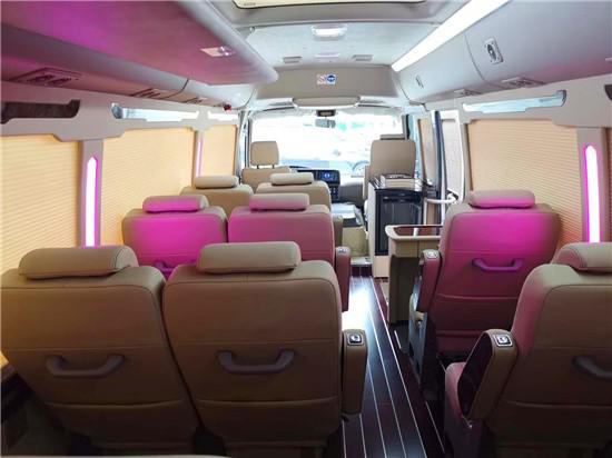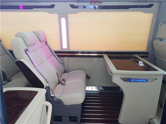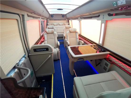 丰田考斯特16座座椅布局上有两种方案,一种是加装两张航空座椅的汇报版,在车内方便向领导汇报工作。第二种就是首长版,办公桌直接在司机后方加装。丰田考斯特16座基本配置还有百褶窗帘、台湾窗帘、LED航空顶灯、进口车载专用冰箱、19寸吸顶车载显示器、全隔断、32寸车载液晶显示器、虎牌烧水壶、USB接孔、220V电源插座等,都可以满足办公任何条件。