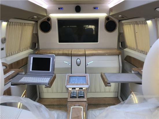 这款车依旧是商务人士最偏爱的能保护隐私的隔断式设计,驾驶座与后舱由可升降液晶显示屏隔开,吧台式隐藏座椅,必要的时候原本4座商务车可以变成6座,满足多人出行需求。