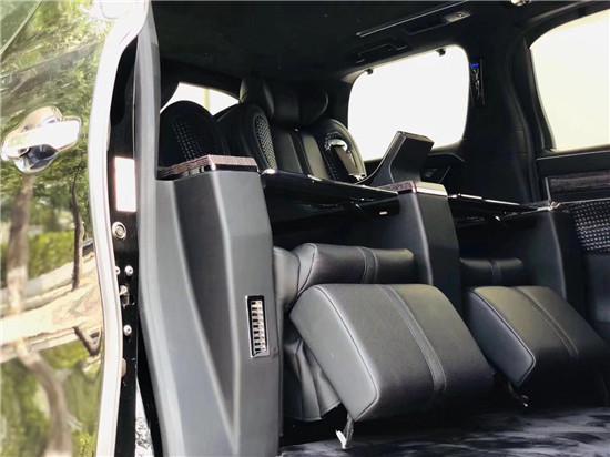 内饰采用飞机头等舱人体工程学贴合身体各个部位的乘坐角度。更值得注意的是真正飞机舱都做不到的座椅功能,埃尔法座椅带有座椅加热、座椅通风、座椅气动按摩、座椅腿托一键式伸缩功能及腿托180度展开、隐藏式航空镁铝合金行政办公桌板、同时扶手多功能键盘区配有亮度可调节阅读灯、3级座椅记忆功能。操作键集中便捷,使得后排乘坐贵宾可以安心享受航空舱带来的乐趣。