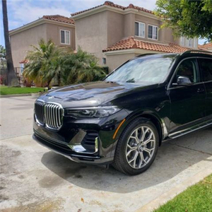 宝马X7 (配置|询价)外观高度还原X7iPerformance概念车设计语言,前脸配备硕大的双肾进气格栅,“天使眼”大灯组造型极为修长且采用开眼角设计,内部配备激光光源,最大照射范围可达600米。