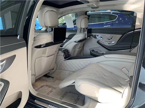内饰方面:新一代梅赛德斯-迈巴赫S级轿车的车主通常会坐在后排,与之对应的是后排左右两侧标配的行政座椅。借助特殊的调节系统,后排座椅提供了超乎寻常的独特舒适感。值得一提的是,在腿部空间和座椅位置不变的情况下,靠背可单独调节。同样全系标配的是后排腿部空间扩展组件,通过对系统的调节,右侧后排座椅在腿部空间方面比常规座椅的最大位置还要多出77毫米。后排座椅功能均通过车门上经典的梅赛德斯-奔驰方式的控制板来操作。当然,后排中央扶手中带有两个杯座、多处储物空间及木饰。