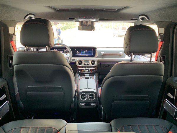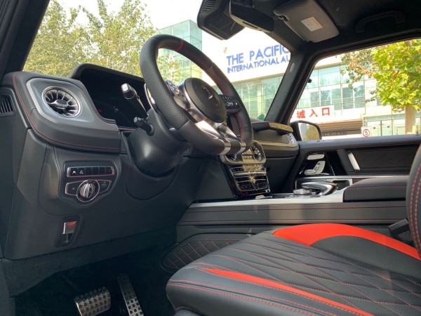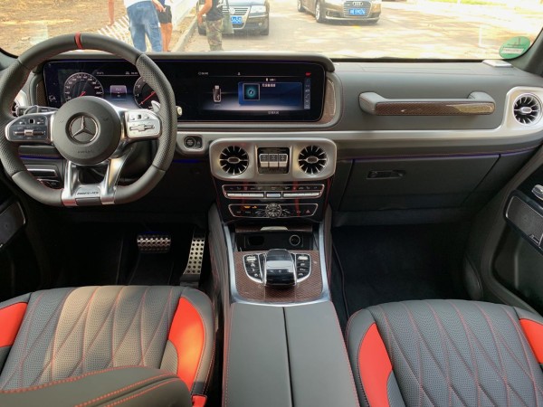 19款奔驰G63AMG内饰方面其实才全新一代G级最大的变化。新车换上了奔驰最新家族式的内饰设计,这无疑让G级拥有了旗舰级应有的豪华感,不过经典的副驾驶席扶手和三把锁的开关键依旧延续了经典设计,并设置在中控台最显眼的位置。其中双12.3英寸高清屏,虚拟仪表盘与中控液晶屏融为一体,视觉上形成一个宽屏驾驶舱,中部的涡扇式空调出风口也颇具设计感,还大量采用了皮革的包覆。另外,新一代G级还对驾乘空间也进行了优化。