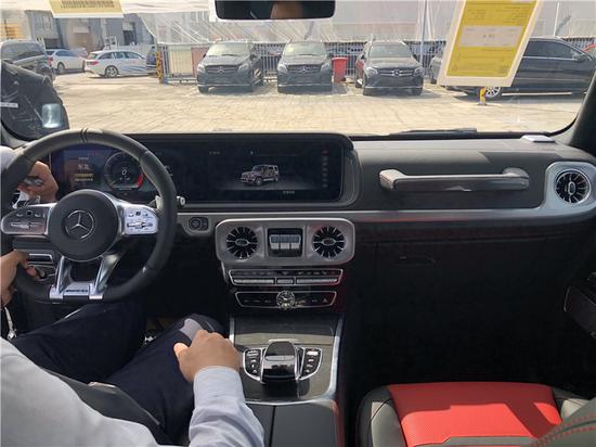 19款全新G63内饰方面,新G63保留了新G500的整体设计,除配色差异外,新车还换装了全新造型的平底式AMG运动方向盘,其两侧配以打孔皮质包裹,下部镀铬装饰的造型也与新G 500明显不同,看上去十分战斗。此外,全液晶仪表盘+中控大屏的双12.3英寸屏幕设计在新车上也没有缺席,营造出了浓郁的科技感。