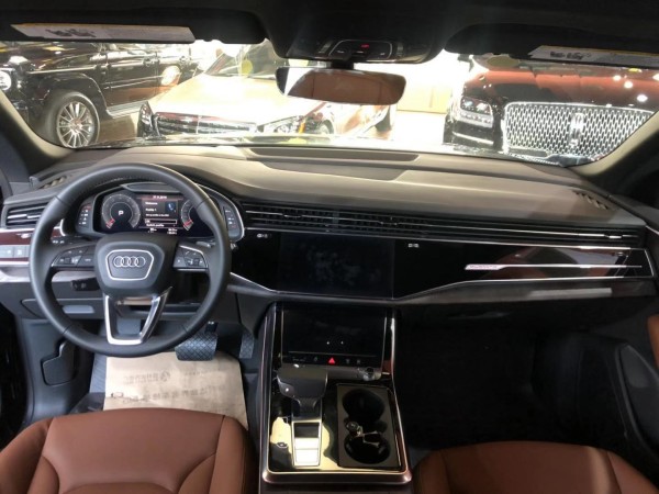 进入车厢内部,会感觉奥迪Q8和全新A8的设计高度雷同。奥迪全新家族化设计,科技感十足的虚拟驾驶舱氛围,同样的三块大屏,横向贯穿的前排空调出风口。中控台采用大面积的真皮包覆,且向驾驶员一侧倾斜,形成以驾驶员为中心的驾驶舱。19款奥迪Q8标配升级版导航MMI系统,导航系统可根据以往旅程提供智能目的地建议;还可以根据驾驶时间和路况总结经验。通过可选奥迪connect互联科技钥匙,可以无钥匙进入Q8。车主可以与另外四个人共享汽车,使用安卓手机开锁、锁车以及启动发动机。标配个性化设置使车主可以在个人资料中存储多达400个优先参数,例如,驾驶员座椅位置、空调设置或经常使用的媒体和导航目的地等。