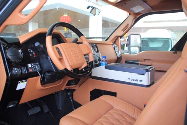 “乔治巴顿”越野车的内饰可以用“奢华”、“精致”、“体贴”来形容。后舱采用了豪华商务车布局,内饰色调以米白色。酒红色两种搭配,北美皇家桃木做以装饰;前、后舱之间设有隔屏,配以22寸超薄显示器,在最大程度上保证了后舱乘客的私密性的同时又可以在旅途中享受影音快乐;舒适独立的多功能电动真皮座椅,让您置身其中会忘记自己身处外观如战车般的乘坐舱内。